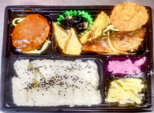 ・ヒレカツ ・サバ竜田の南蛮漬け ・いんげんのフリッター ・厚焼き玉子 ・デミグラスハンバーグ