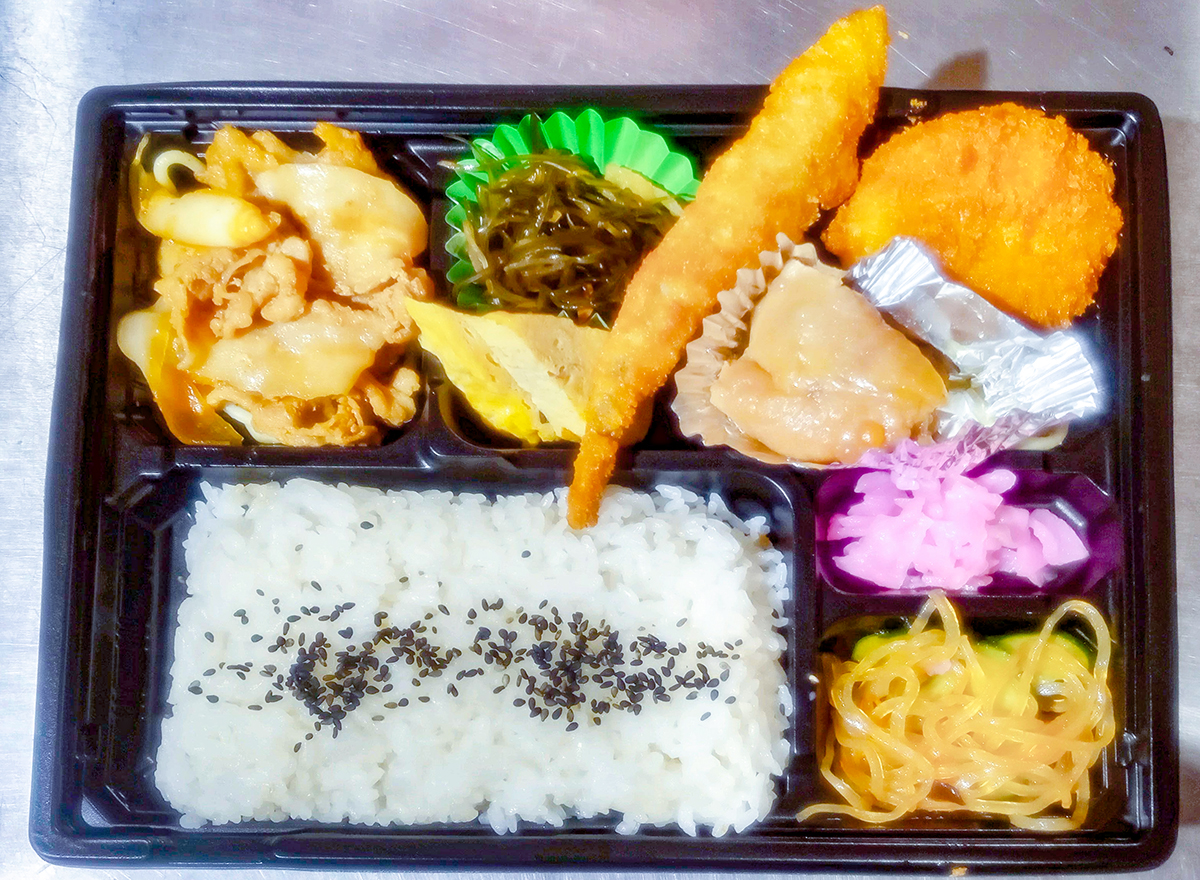 ・カニクリームコロッケ ・ししゃもフライ ・鶏肉の甘辛煮 ・厚焼き玉子 ・豚焼肉