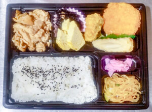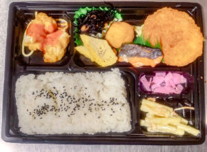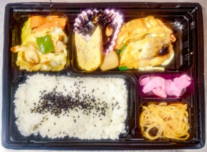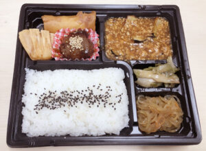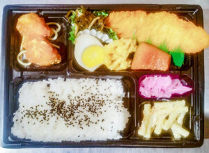 特製のタレをかけたエビ・イカ・レンコンが乗った